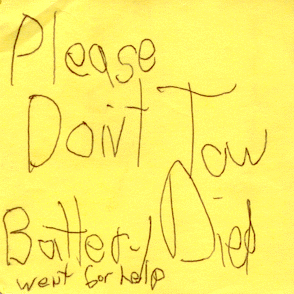 Here are some actual messages left by stranded motorists who DO NOT have their own Road Side Message Board: